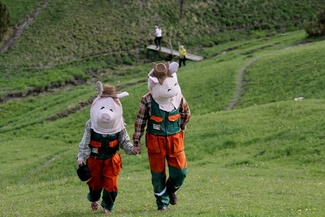 Tapahtuman maskotit liikenteessä vuonna 2012.
