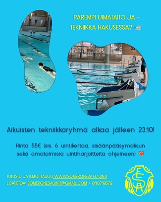 Ilmoittautuminen syksyn uinteihin on päättynyt. Voit kysellä vapaita paikkoja vielä sähköpostitse someronesauinti@gmail.com
